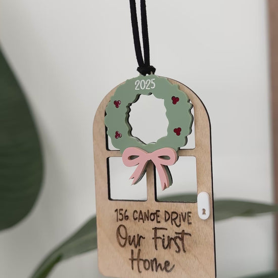 Celebrate your first Christmas in your new home with this beautiful 'Our First Home' door ornament. Each ornament is personalized with your family name or address and the year — making it a perfect keepsake for new homeowners.