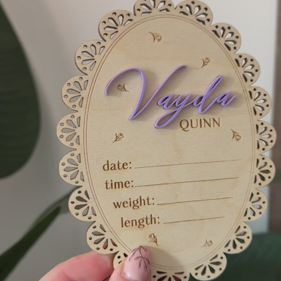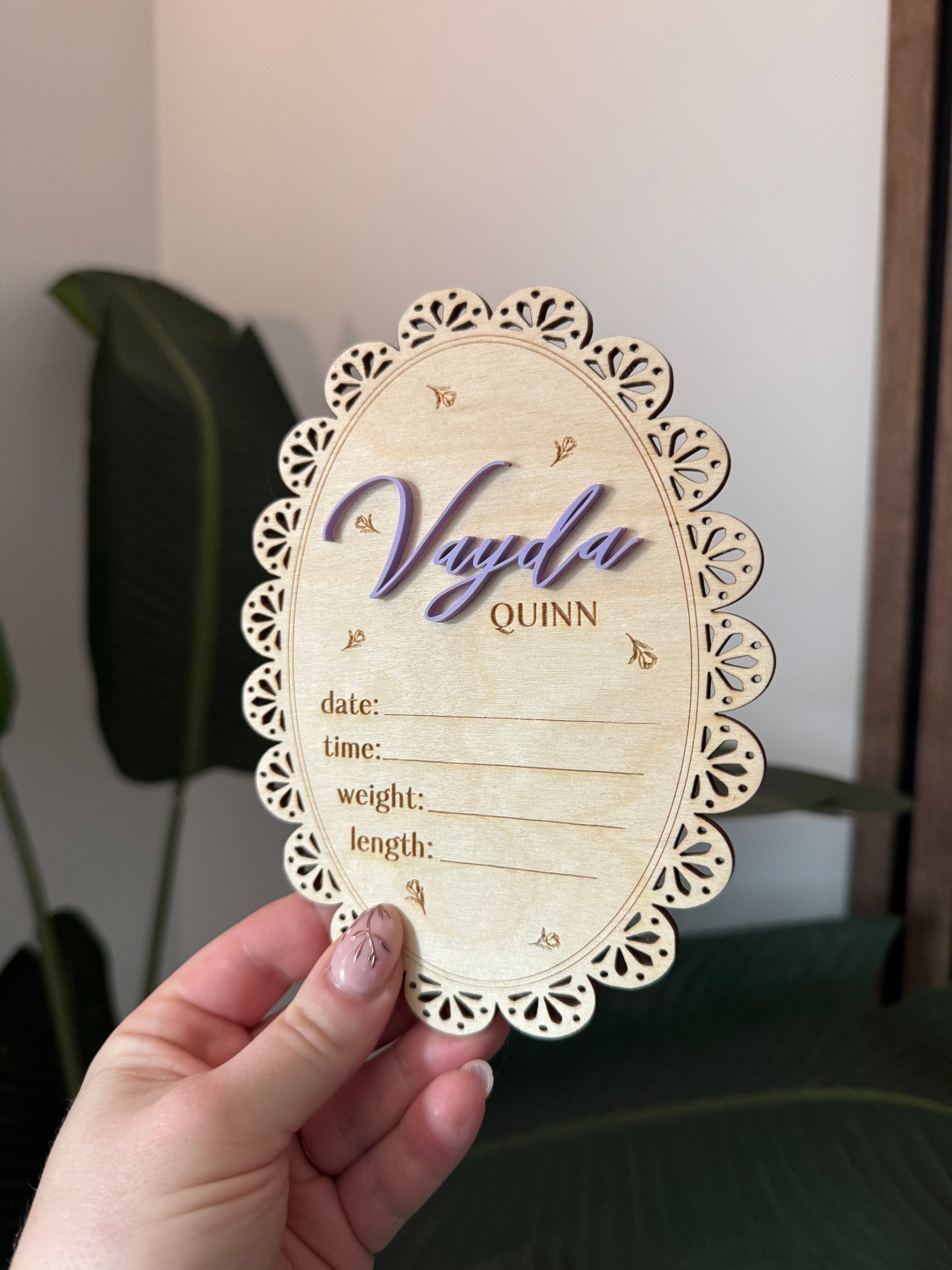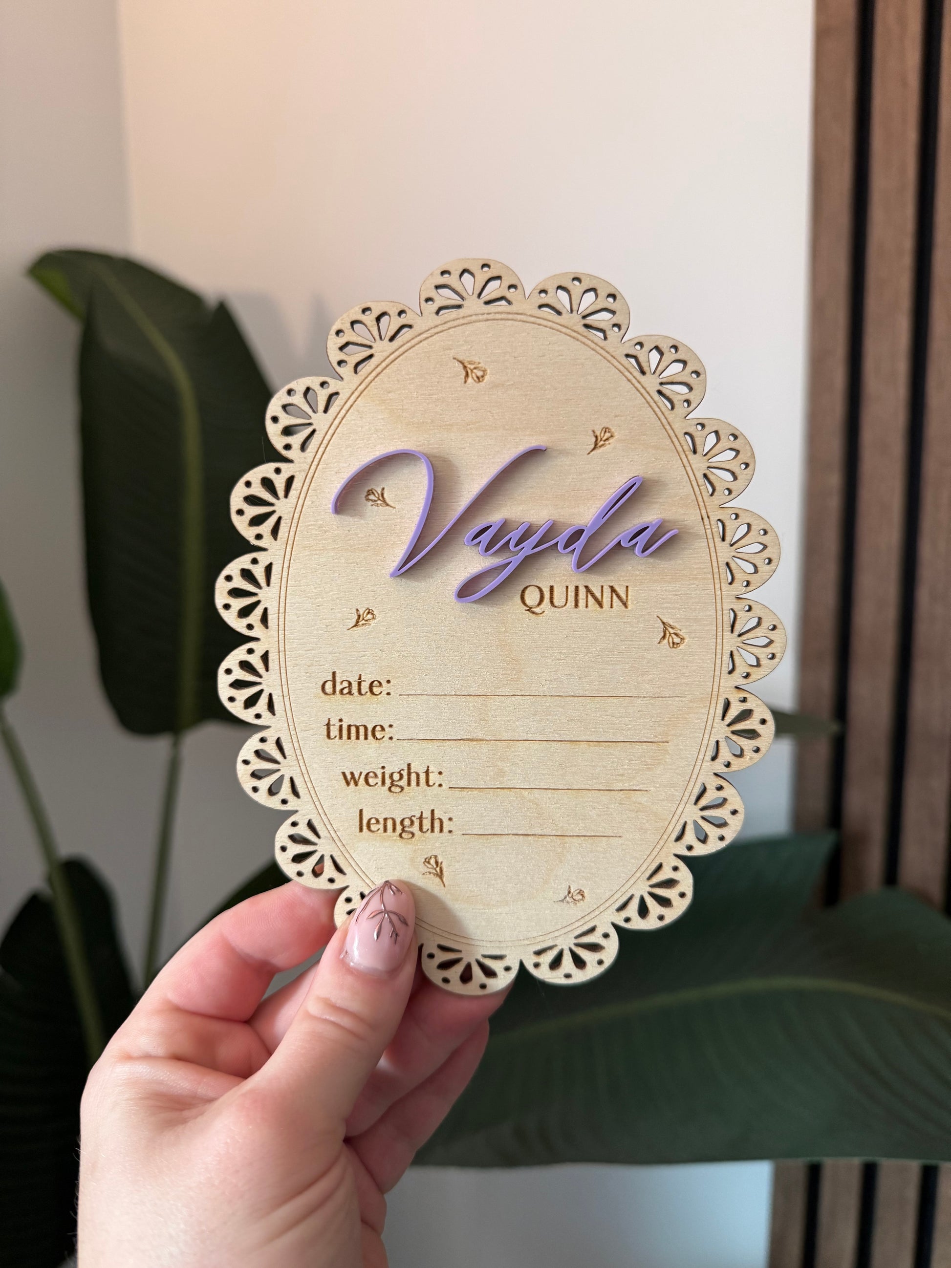 Announce your baby’s arrival with this custom wooden plaque, perfect for newborn photos and nursery décor.