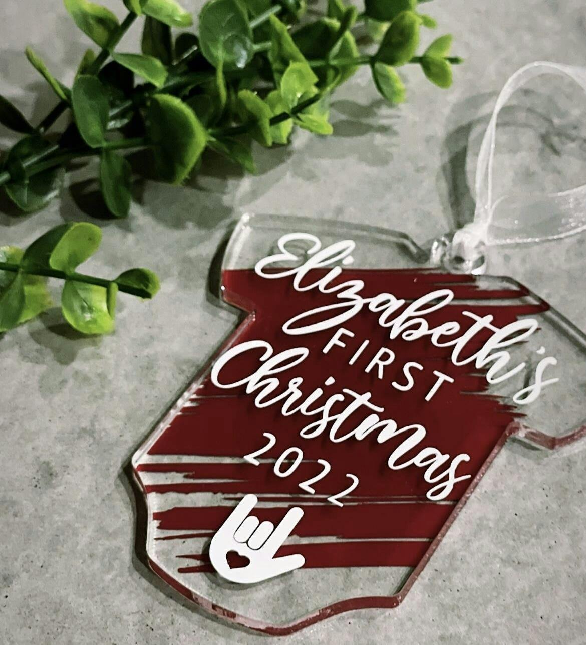 Celebrate your baby's very First Christmas with our adorable handcrafted personalized ornament. This makes a wonderful keepsake ornament and will be loved for years to come! Great gift for any new parents!