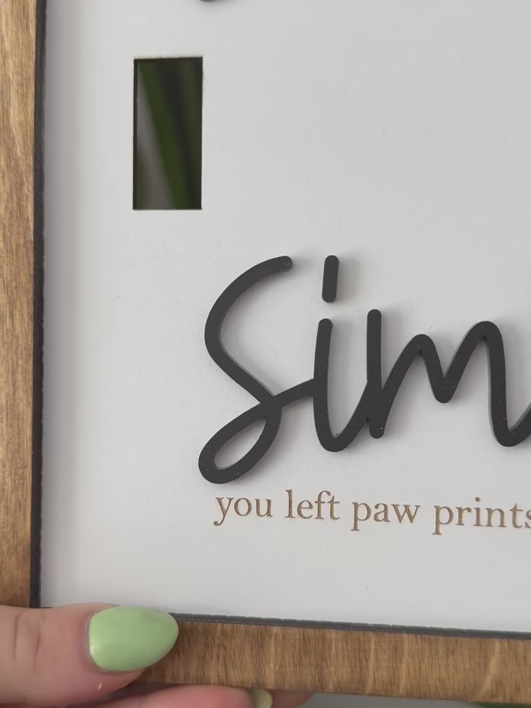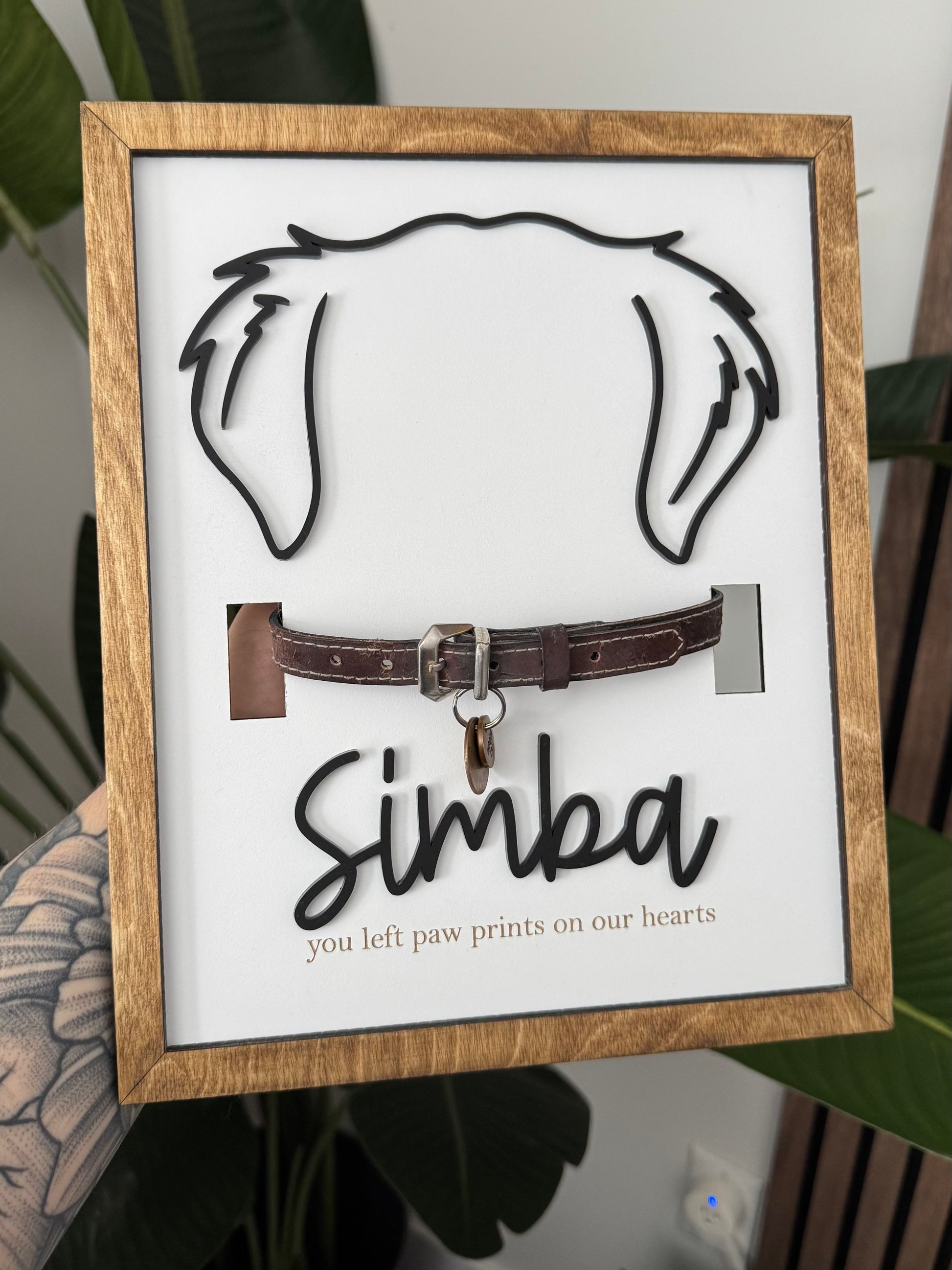 A beautiful way to honor your pet, this memorial sign features a custom-drawn illustration of their ears and a dedicated slot to display their collar.