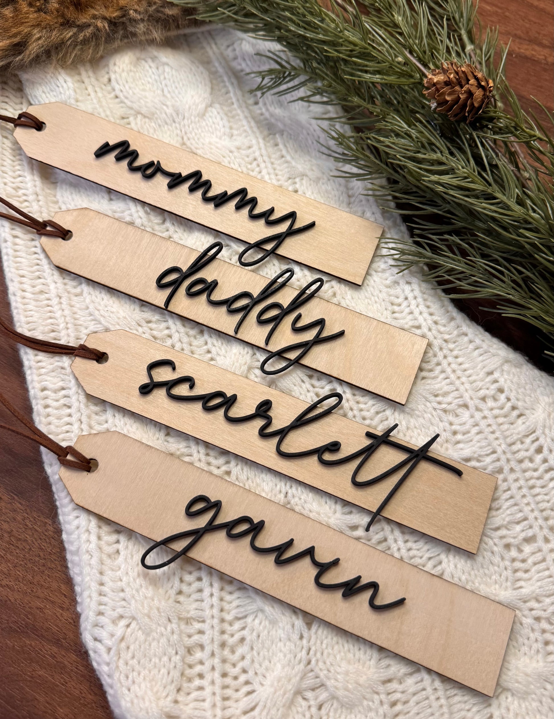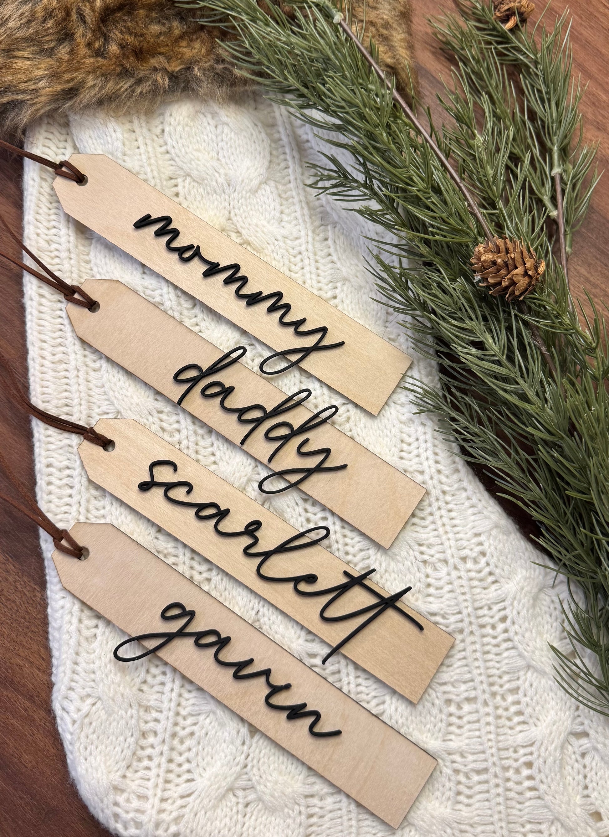 Elevate your holiday decor and gift-giving with these charming and customizable wooden tags. Ideal as present tags, stocking tags, or unique ornaments, these tags add a personal, moften touch to any occasion.