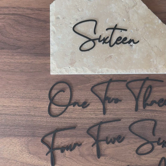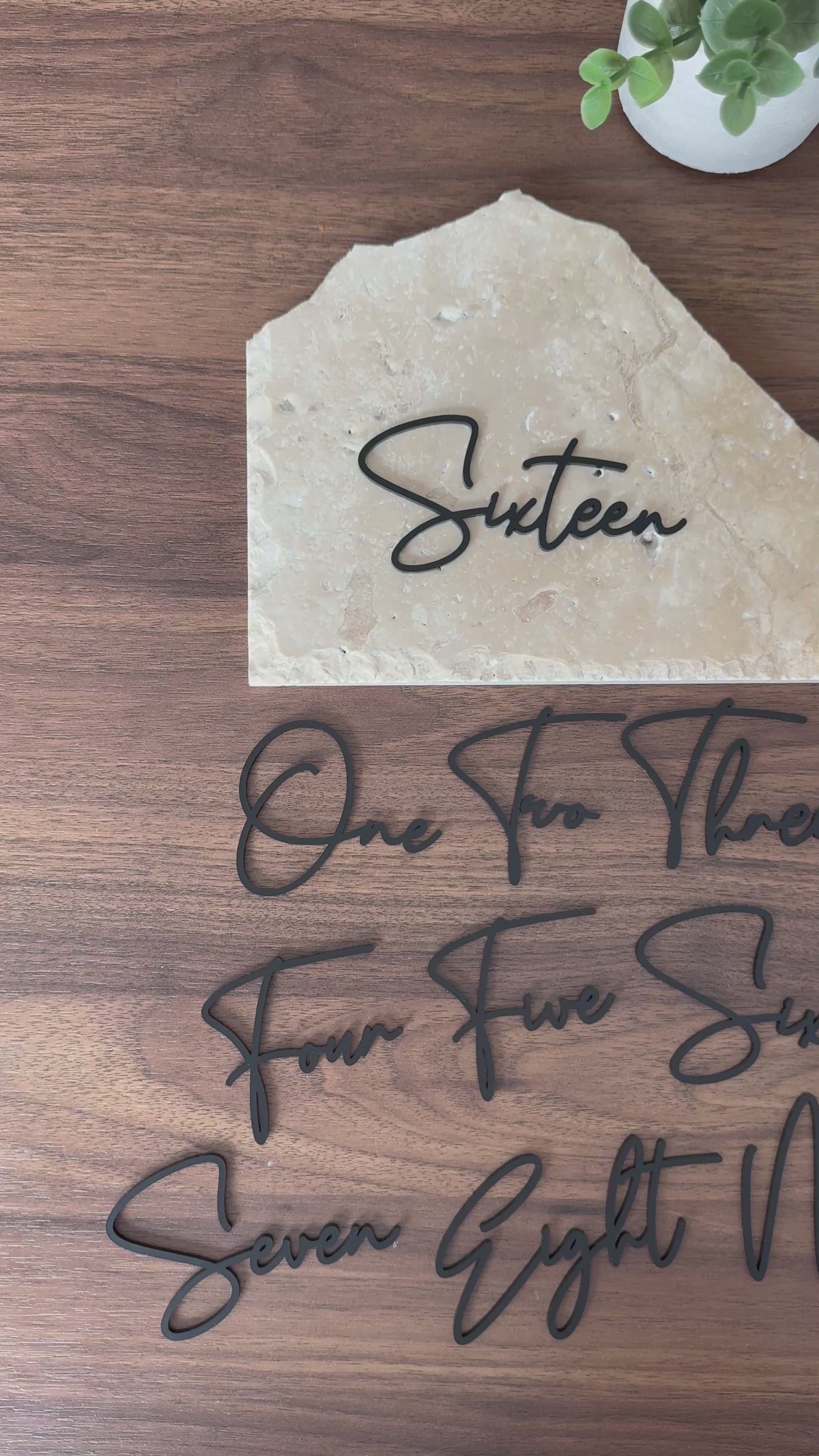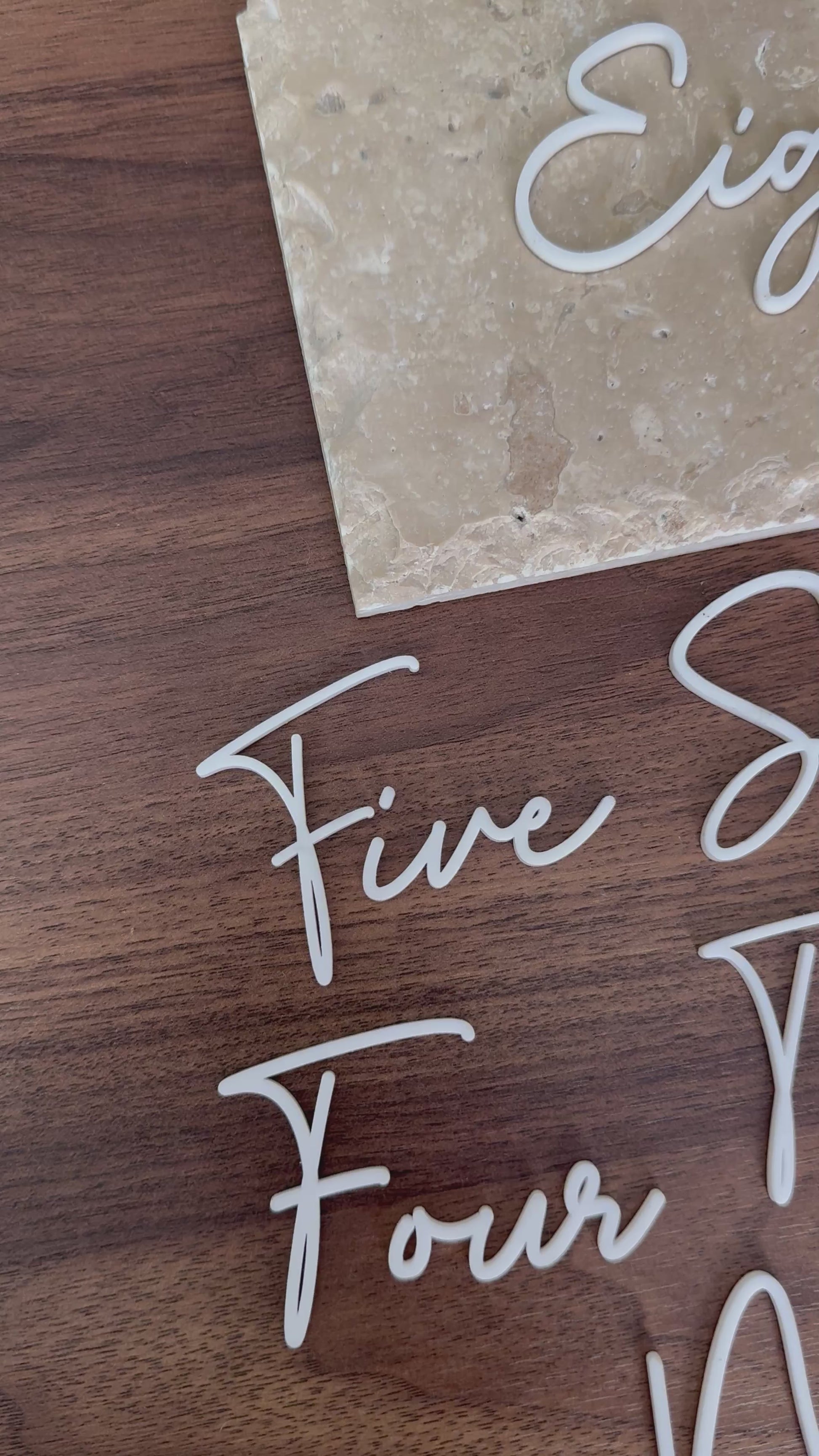 Elevate your tables with these sleek, modern acrylic table numbers—designed to attach directly onto travertine, marble, or other natural stones. Perfect for weddings, styled shoots, or special events, they offer a clean, minimal look with a hint of luxury.