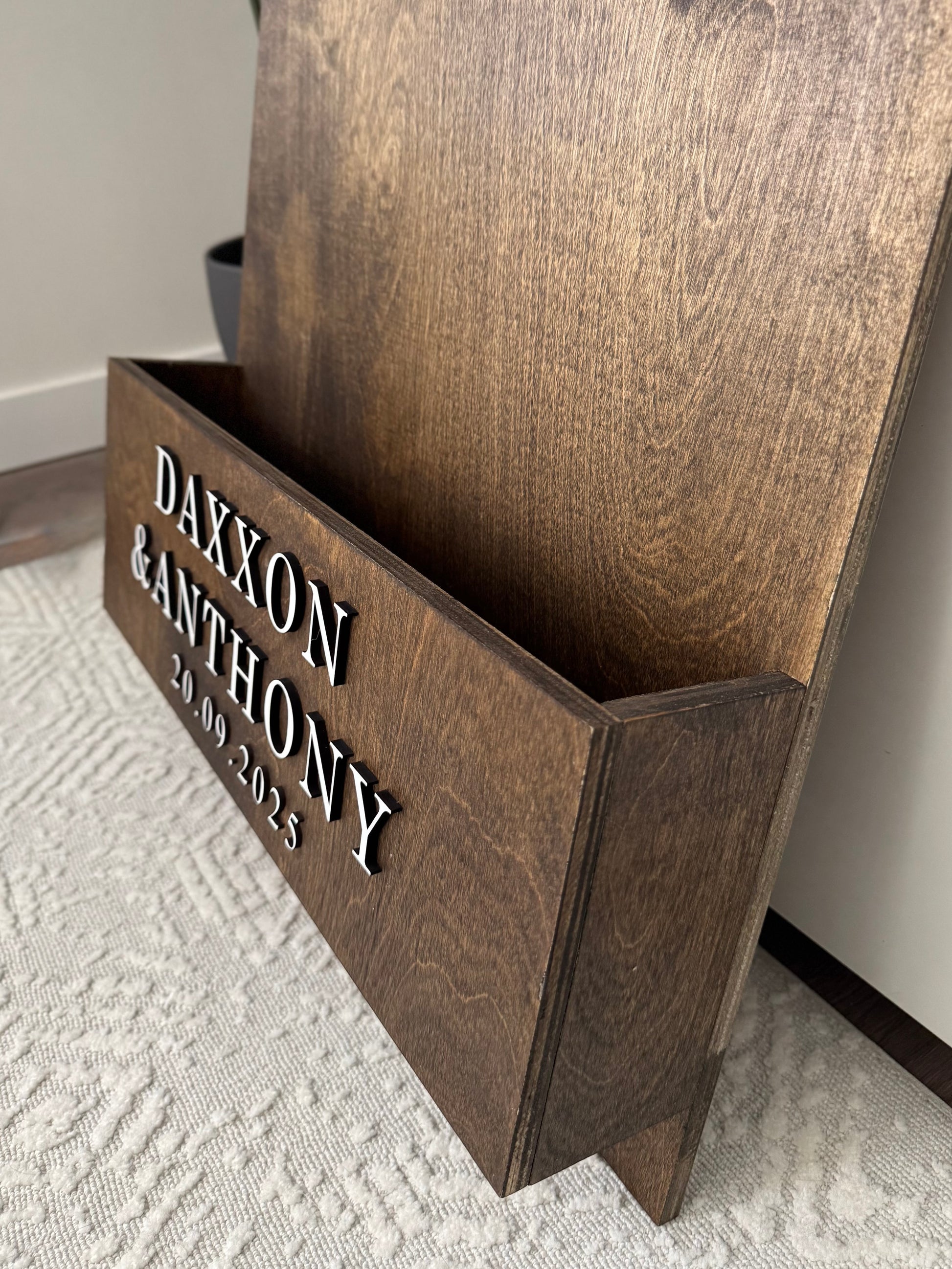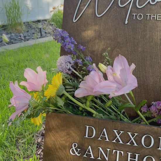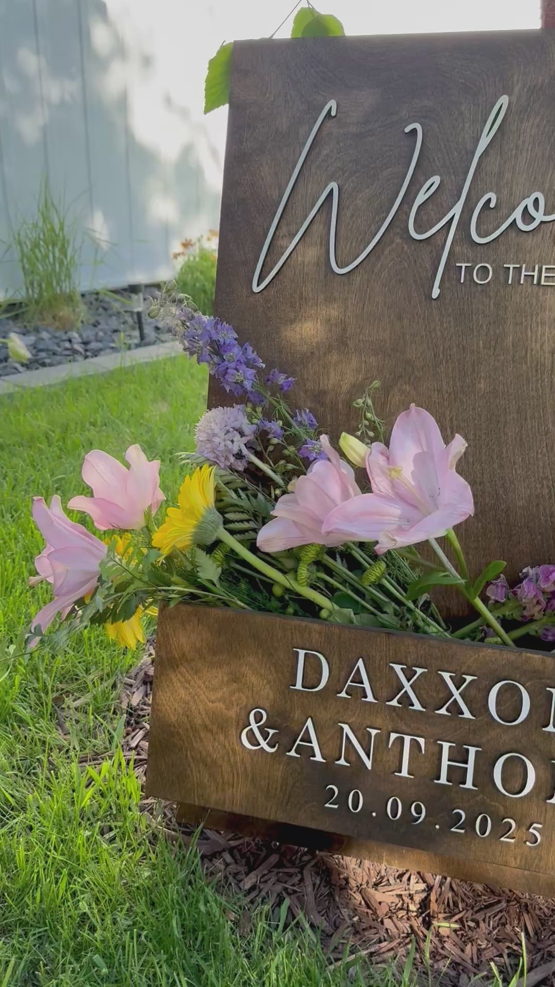 The perfect welcome for your special day—this handcrafted flower box sign can be personalized with whatever you'd like! Names, wedding date, a short phrase, or something totally unique—it's all up to you.