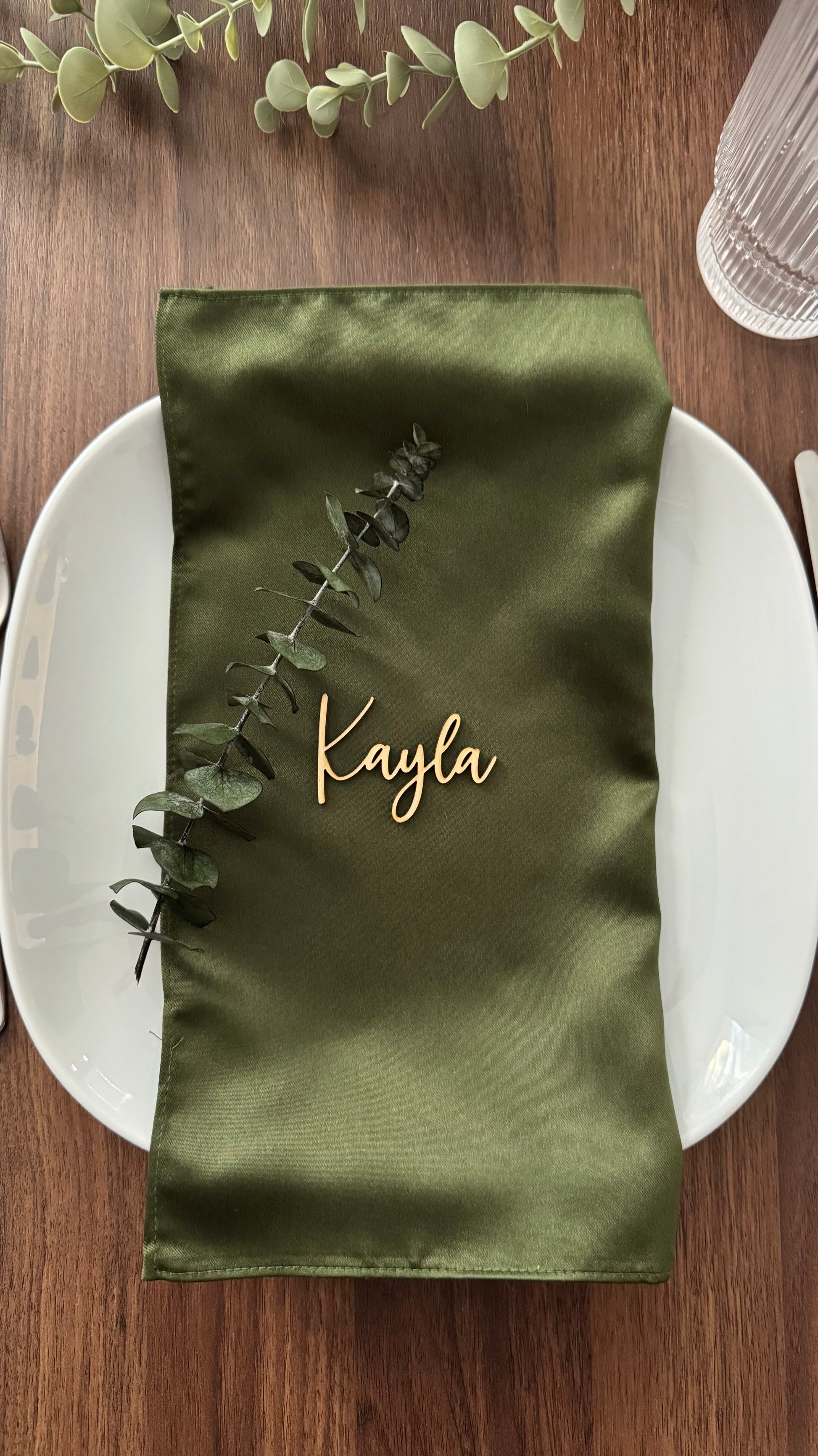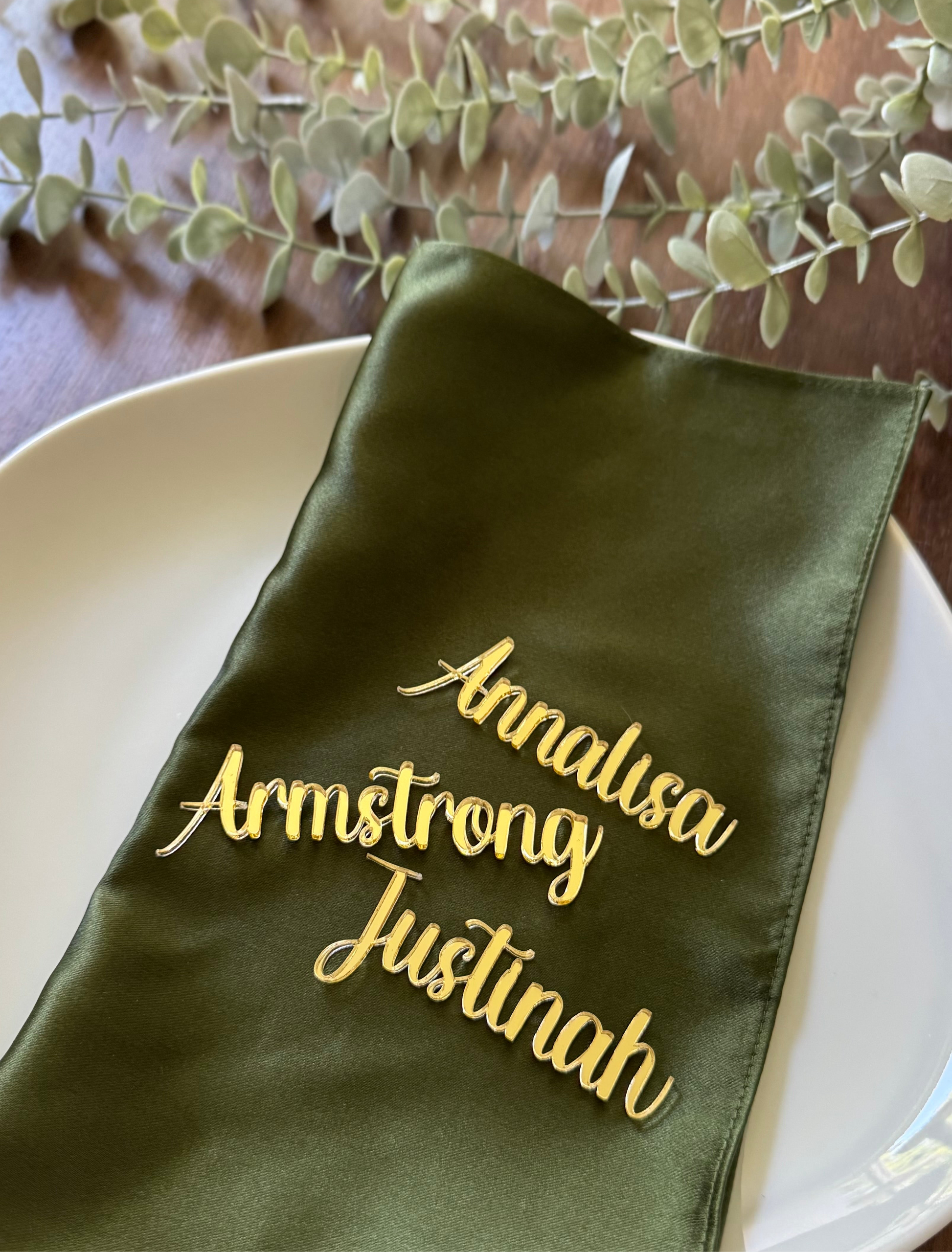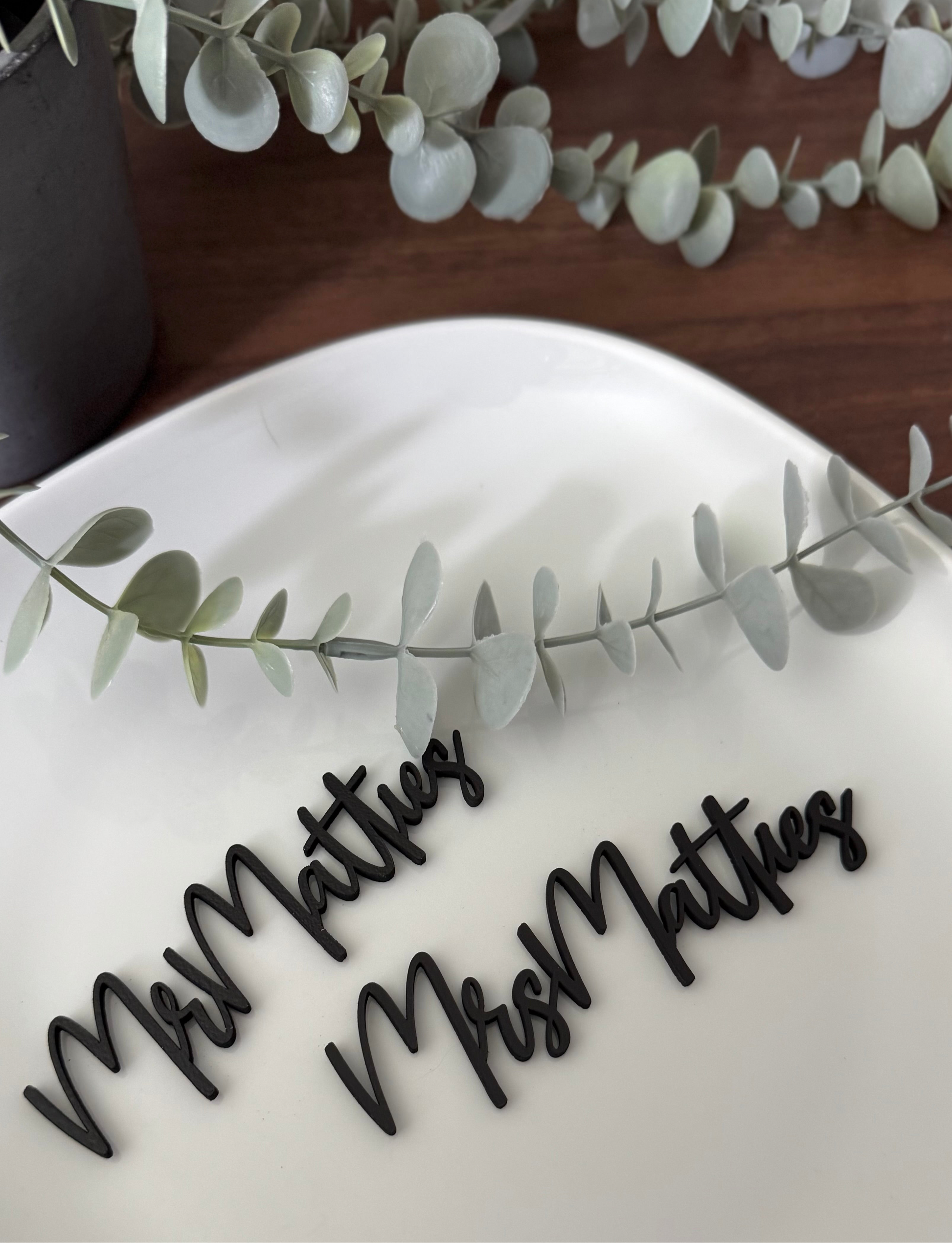 Each name is precision-cut from high-quality acrylic, wood, or MDF in the color and font of your choice, bringing your table settings to life with a modern, elegant touch.