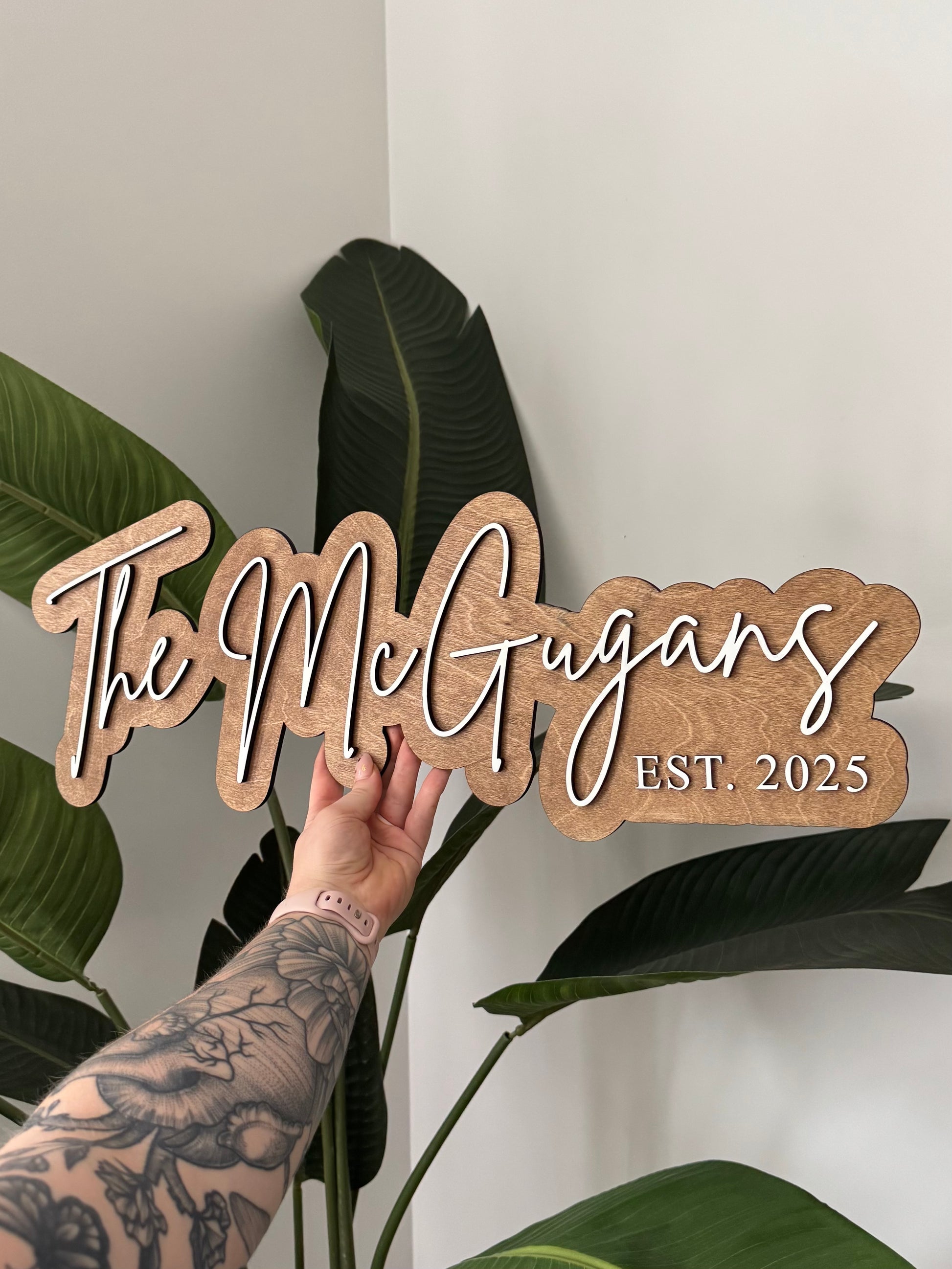 Personalized wedding sign made from premium 1/4" Baltic Birch, layered with painted MDF lettering (1/8" and 1/4" thick for added dimension)