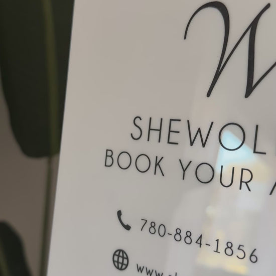 Custom Welcome Sign – perfect for clinics, home businesses, or professional spaces. Personalize with your business name, contact details, and QR code for easy booking or inquiries.